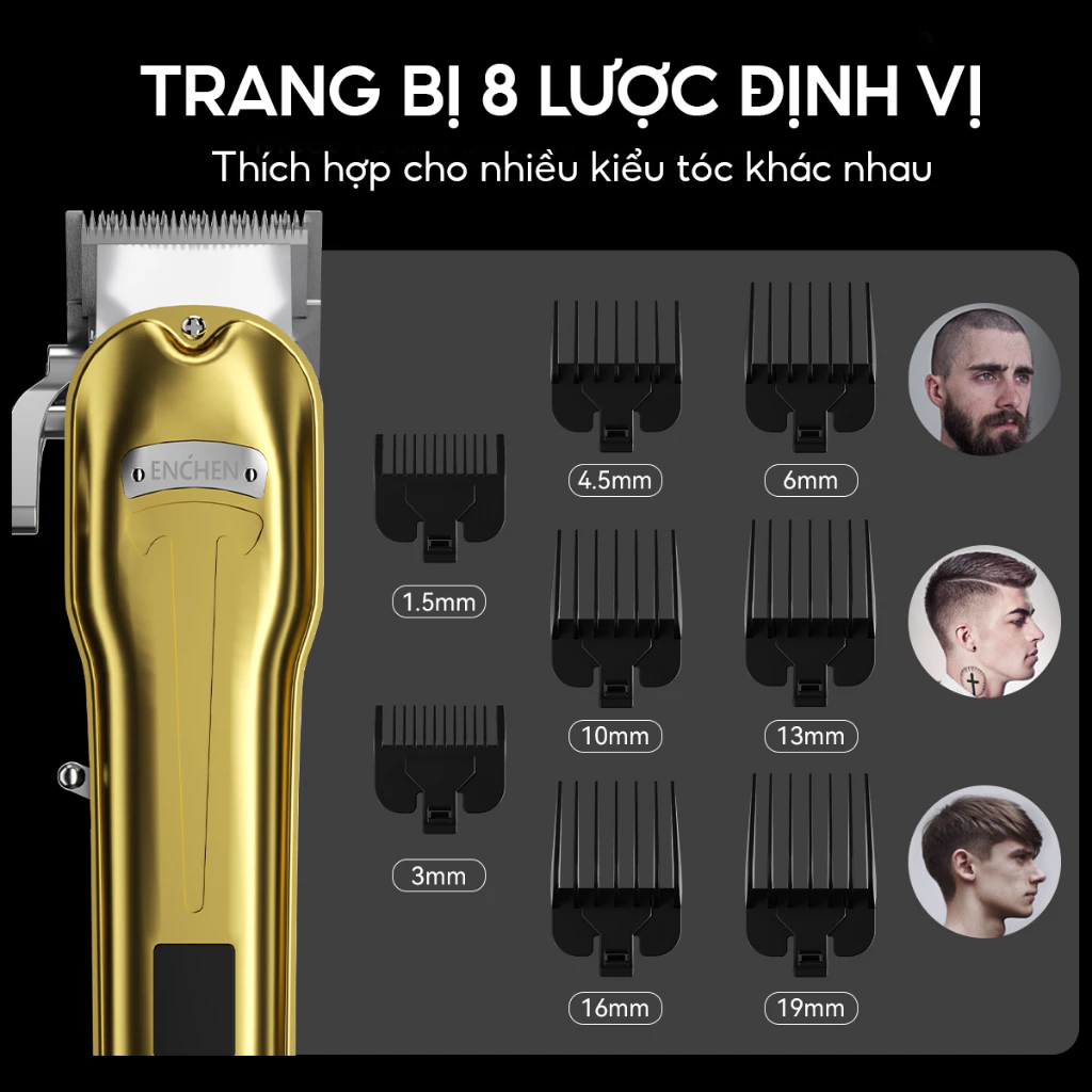 Với lược định vị cố định tích hợp ngay trên thân máy, Enchen Boost 3 cho phép điều chỉnh linh hoạt độ dài cắt chỉ bằng thao tác gạt đơn giản, phù hợp trong khoảng 0.8 - 2mm. Bên cạnh đó, tông đơ điện Enchen còn đi kèm lược định vị rời, dễ dàng tháo lắp để thay đổi theo từng nhu cầu sử dụng. Nhờ sự kết hợp này, bạn có thể thoải mái cắt tỉa nhiều kiểu tóc khác nhau mà vẫn đảm bảo tính tiện lợi, nhanh chóng và hiệu quả ngay tại nhà.