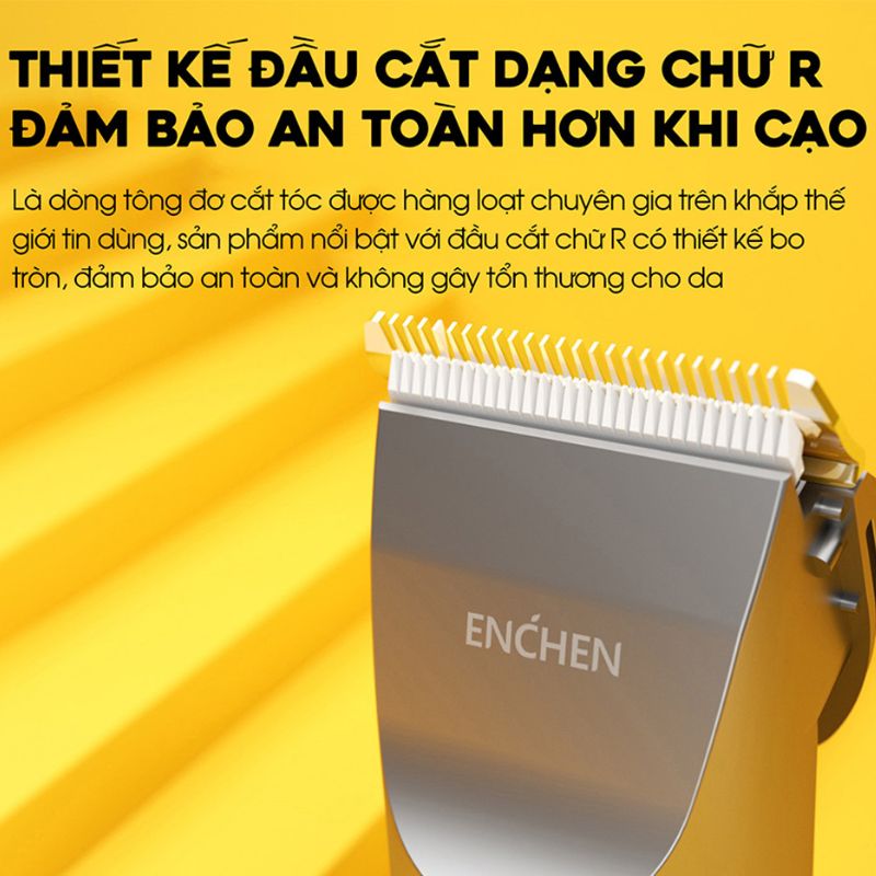Thiết kế lưỡi cắt chữ R trên tông đơ cắt tóc Enchen Hunter giúp đảm bảo an toàn tối đa trong quá trình sử dụng. Cạnh bo tròn của lưỡi dao được nghiên cứu để không gây tổn thương hay trầy xước, kể cả khi tiếp xúc gần với da đầu hoặc vùng da nhạy cảm. Cấu trúc này đặc biệt phù hợp khi thao tác trên tóc mai, râu hoặc phần tóc sát da mà vẫn đảm bảo sự mượt mà và chính xác. Nhờ đó, người dùng có thể yên tâm cắt tỉa thường xuyên mà không lo kích ứng hay đỏ da. Đây là yếu tố được chú trọng trong dòng thiết bị chăm sóc cá nhân chuyên nghiệp.