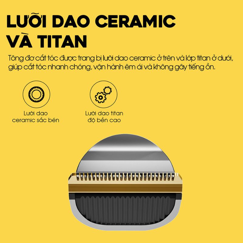 Lưỡi dao ceramic kết hợp titan trên Enchen Hunter mang lại hiệu quả cắt tỉa vượt trội với độ bền cao. Lớp ceramic phía trên giúp giảm ma sát trong quá trình hoạt động, đảm bảo lưỡi cắt luôn mượt và không bị nóng. Trong khi đó, phần titan phía dưới tăng độ cứng và khả năng chống mài mòn, kéo dài tuổi thọ thiết bị. Sự kết hợp này giúp duy trì độ sắc bén lâu dài, hạn chế tình trạng rối tóc hoặc kéo giật trong quá trình sử dụng. Đây là điểm mạnh đáng chú ý trong các sản phẩm tông đơ hướng đến chất lượng chuyên nghiệp