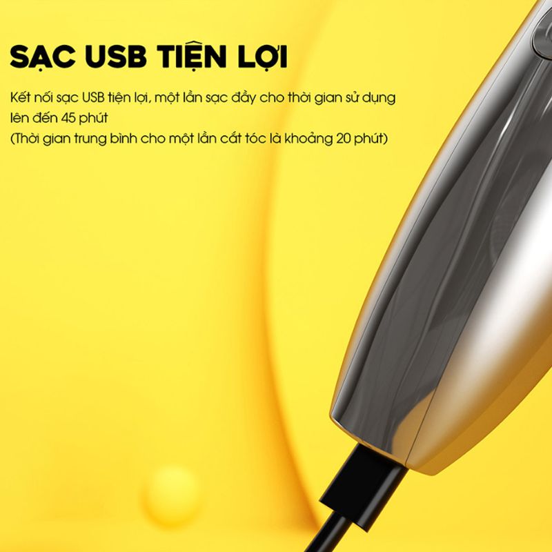 - Sạc USB tiện lợi, dùng liên tục 45 phút